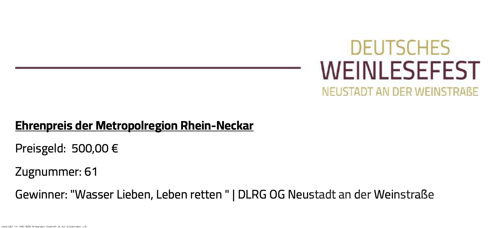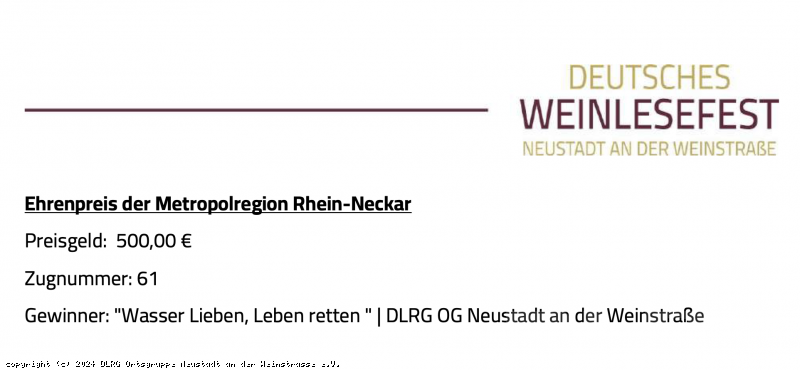 Unsere Ortsgruppe hat beim Winzerfest-Umzug den Ehrenpreis der Metropolregion Rhein Neckar gewonnen. Der Preis wird mit einem Preisgeld i.H.v. 500,00 € dotiert. Damit wird die Arbeit unserer Ehrenamtlichen geehrt - insbesondere unseres Jugendvorstandes, welche die Teilnahme am Winzerfestumzug geplant und organisiert hat. Wir bedanken uns bei den Verantwortlichen für diese Auszeichnung!